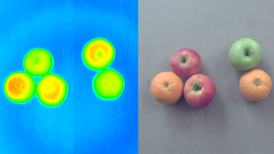 Look at the left part of the point cloud, can you tell whether this is an apple or an orange? It is only possible to determine the difference in RGB color. Conversely, a 2D camera would not be able to tell the difference between the photo of an apple and the real apple.