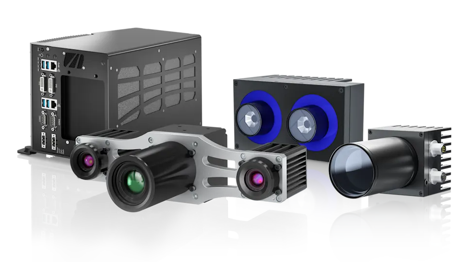 • The Basler stereo visard or stereo ace cameras enable precise depth detection of the recorded scene. They can either be mounted on arm (directly on the robot) or positioned statically off arm.