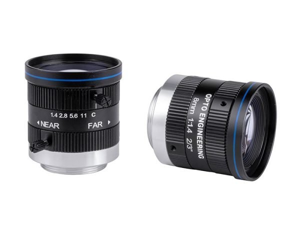 Opto Engineering (OPTO) offers a variety of lenses for machine vision applications that support up to 4/3″ sensors (which have a diagonal image circle of approximately 21.6 \text{ mm} to 23 \text{ mm}).